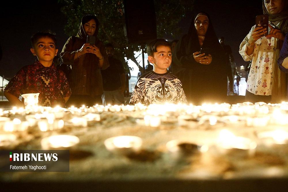 ساکنین و گردشگران جزیره کیش، شامگاه یکشنبه ۷ اردیبهشت ۱۴۰۴، به یاد درگذشتگان حادثه بندرعباس، در ساحل اسکله تفریحی کیش گرد هم آمدند و یاد درگذشتگان این حادثه را با روشن کردن شمع، نواختن سنج و دمام و سر دادن نوحه گرامی داشتند و برای مصدومان آن، دست به دعا بر داشتند.