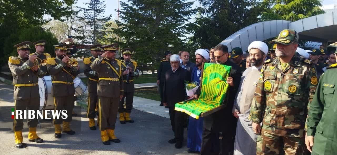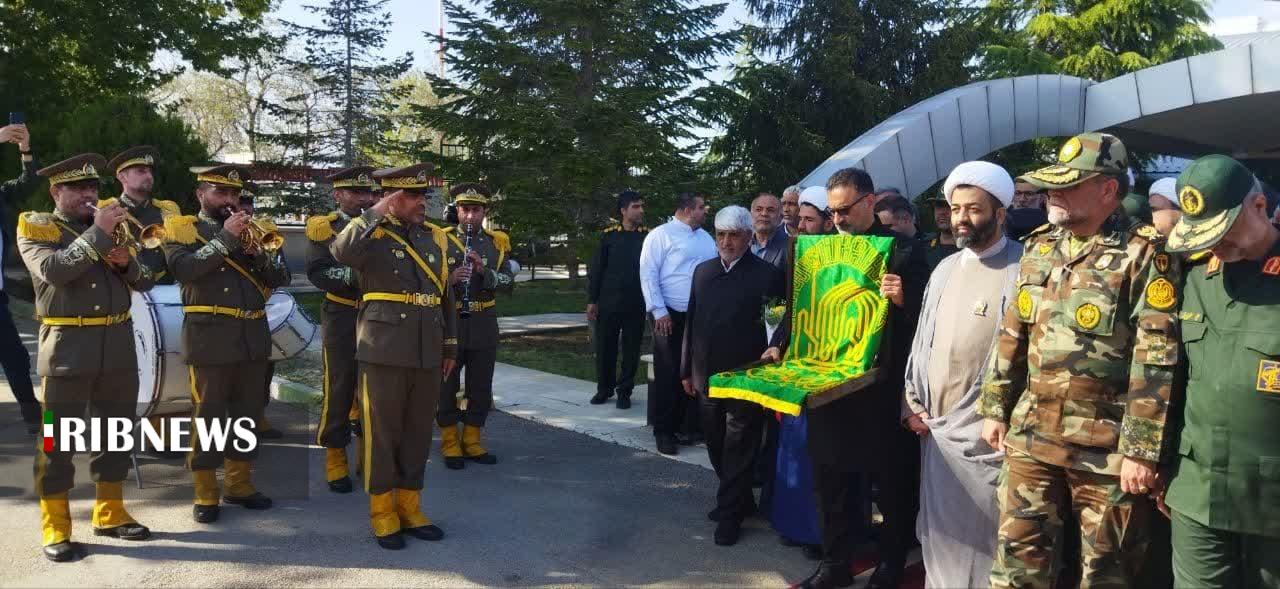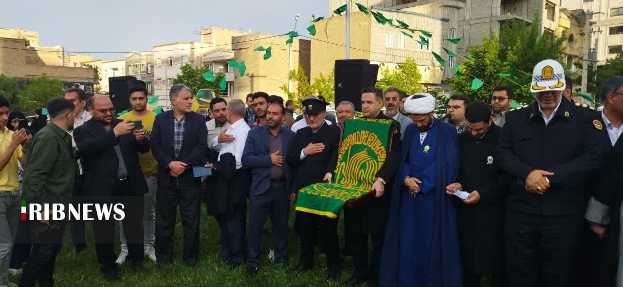 سپس خادمان حرم رضوی پرچم متبرک رضوی را در میدان امام رضای ارومیه با حضور عاشقان و دلباختگان آن حضرت برافراشته کردند.