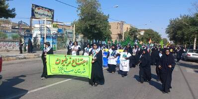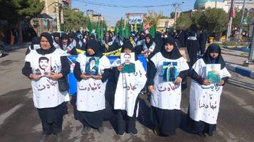 در ابتدای این همایش خواهران بسیحی از روبروی مسجد جامع قائم آل محمد (عج) به سمت مزار شهدای گمنام شهرستان راهپیمایی کردند.