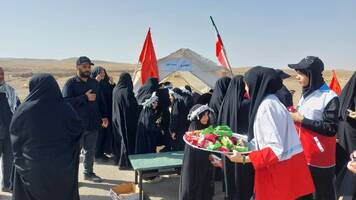 کاروان پیاده در طول مسیر توسط موکب های مردمی روستاهای شهرستان پذیرایی شدند.