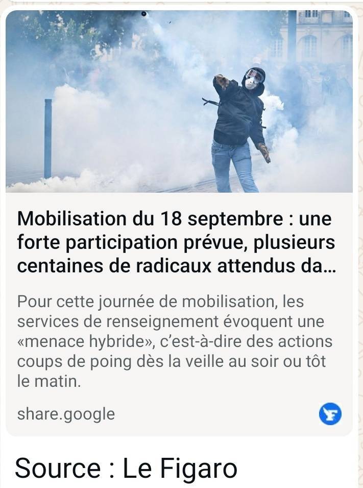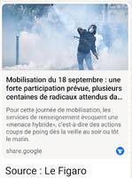 - بسیج همگانی، پنجشنبه روز سیاه ۱۸ سپتامبر، پیش بینی شده دو برابر هفته قبل در تظاهرات شرکت کنند.
