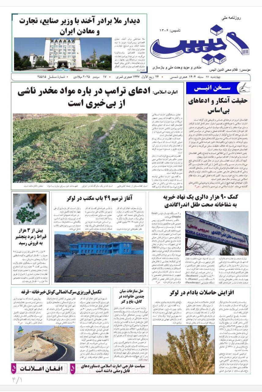 - امارات اسلامی افغانستان: ادعای ترامپ درباره مواد مخدر ناشی از بی خبری است.