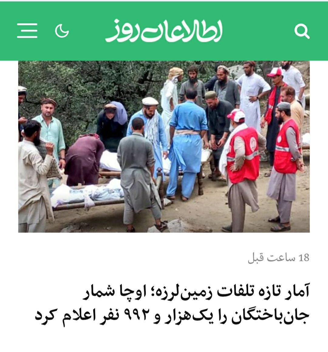 - آمار تازه تلفات زمین لرزه افغانستان، سازمان ملل: هزار و نهصدو نودو دو نفر کشته شدند.