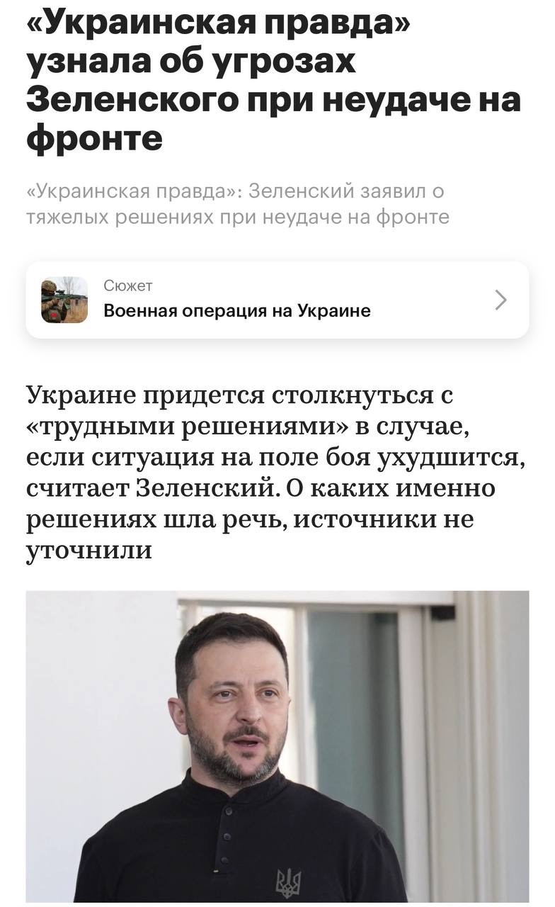 ⁃ روزنامه اوکراینسکایا پراودا از تهدیدهای زلنسکی در صورت شکست در جبهه آگاه شد