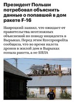 ⁃ رئیسجمهور لهستان خواستار توضیح درباره اطلاعات مربوط به اصابت موشک اف-۱۶ به یک خانه شد.