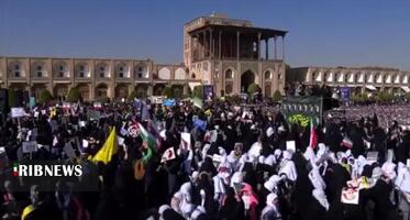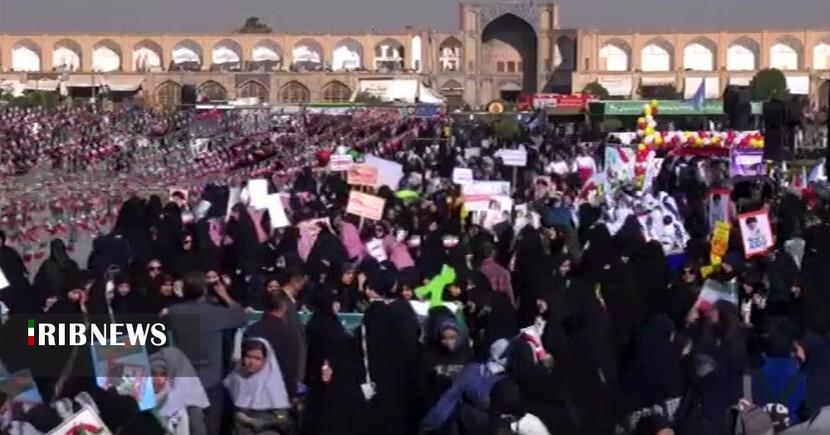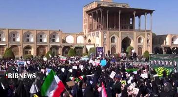 به گزارش خبرگزاری صداوسیما، مرکزاصفهان؛ امروز گروه‌های مختلف مردم ولایت مدار و انقلابی اصفهان بویژه دانش آموزان و داانشجویان اصفهان از ورودی‌های اصلی میدان امام (ره) شامل میدان امام حسین (ع)، خیابان استانداری، گذر سعدی و چهارراه شکرشکن به این میدان تاریخی آمدند و یک صدا ندای استقلال، آزادی و جمهوری اسلامی را فریاد زدند تا بار دیگر وحدت، همدلی و وفاداری خود به انقلاب و ولایت فقیه را به جهانیان نشان دهند.