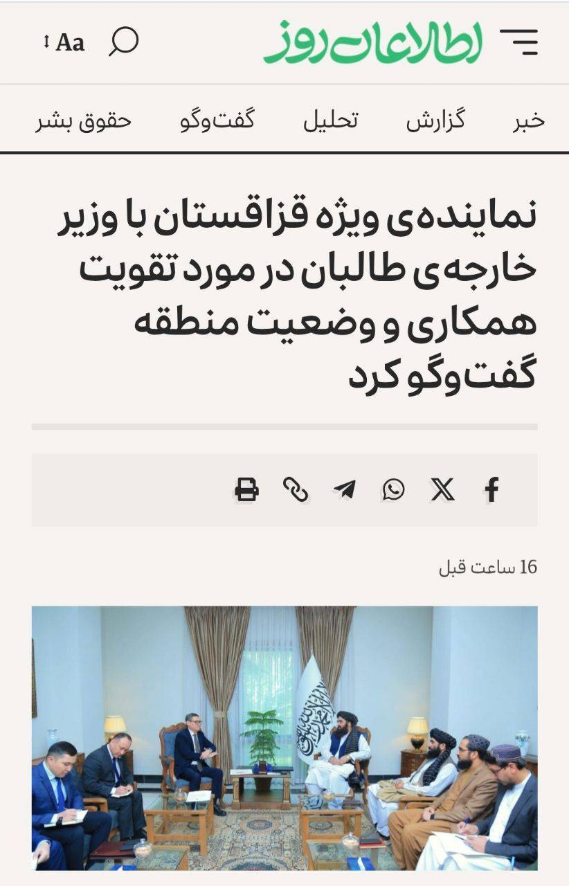 - نماینده ویژه قزاقستان در باره وضعیت منطقه و تقویت همکاری با افغانستان با امیرخان متقی دیدار کرد.