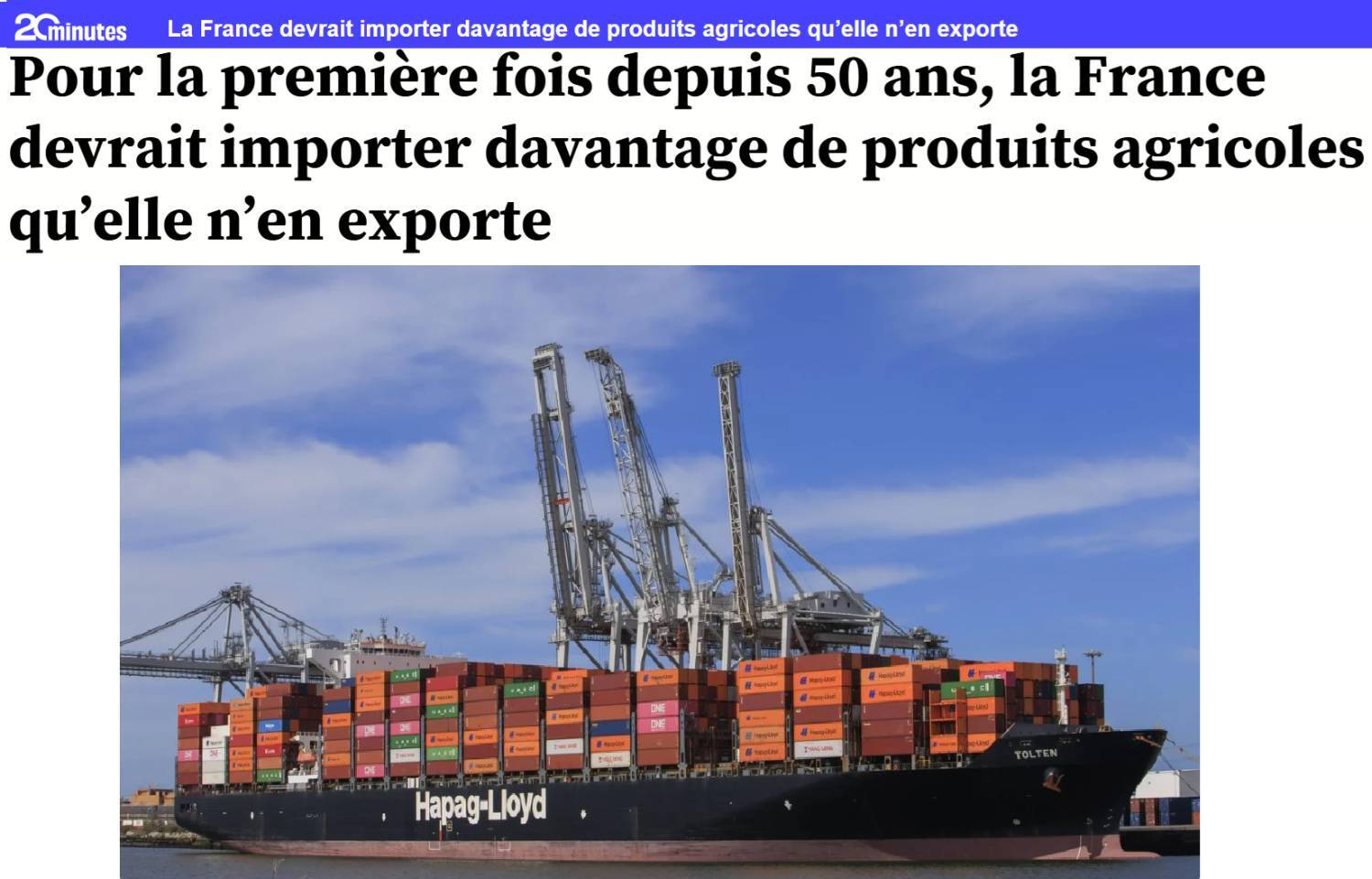 – نخستین بار در ۵۰ سال گذشته، فرانسه به جای صادرات محصولات کشاورزی، واردکننده آن شد.