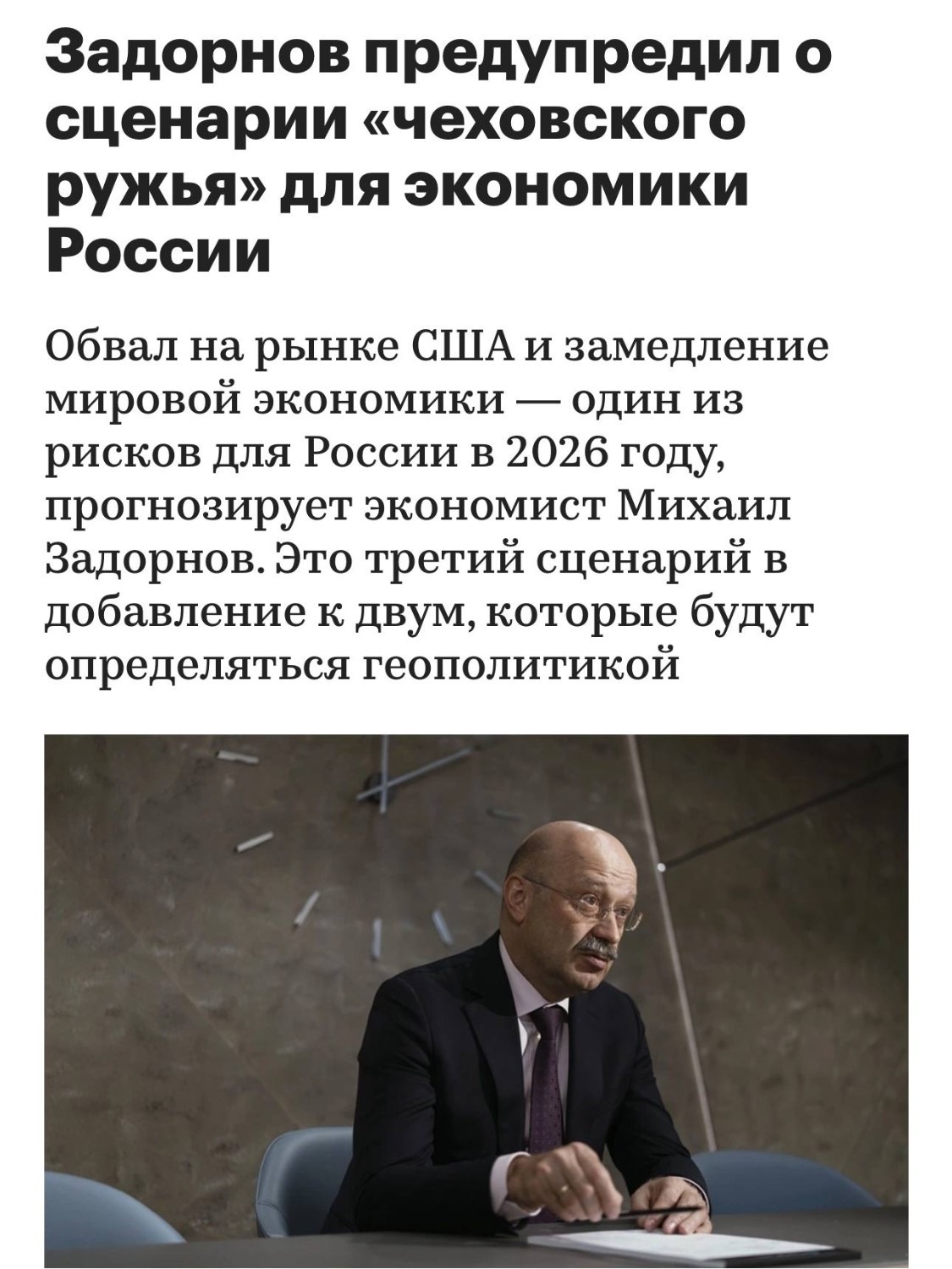 ⁃ زادورنوو درباره سناریوی «تفنگ چخوف» برای اقتصاد روسیه هشدار داد