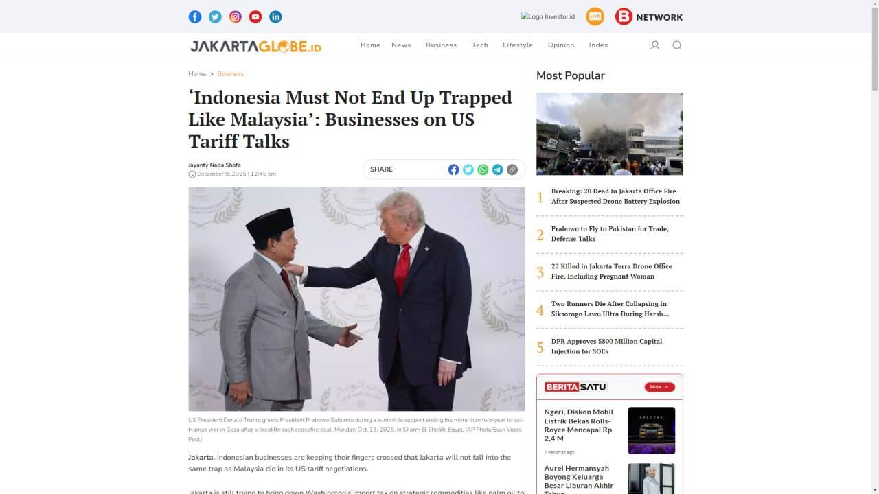 - کارآفرینان هشدار دادند که اندونزی نباید مانند مالزی در مذاکرات تعرفه‌ای آمریکا گرفتار شود