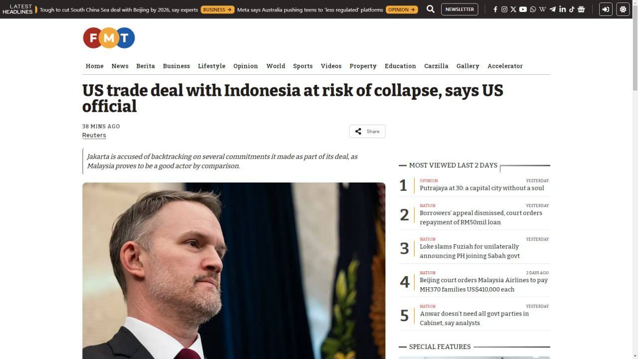 - یک مقام آمریکایی اعلام کرد توافق تجاری آمریکا با اندونزی در خطر فروپاشی قرار دارد