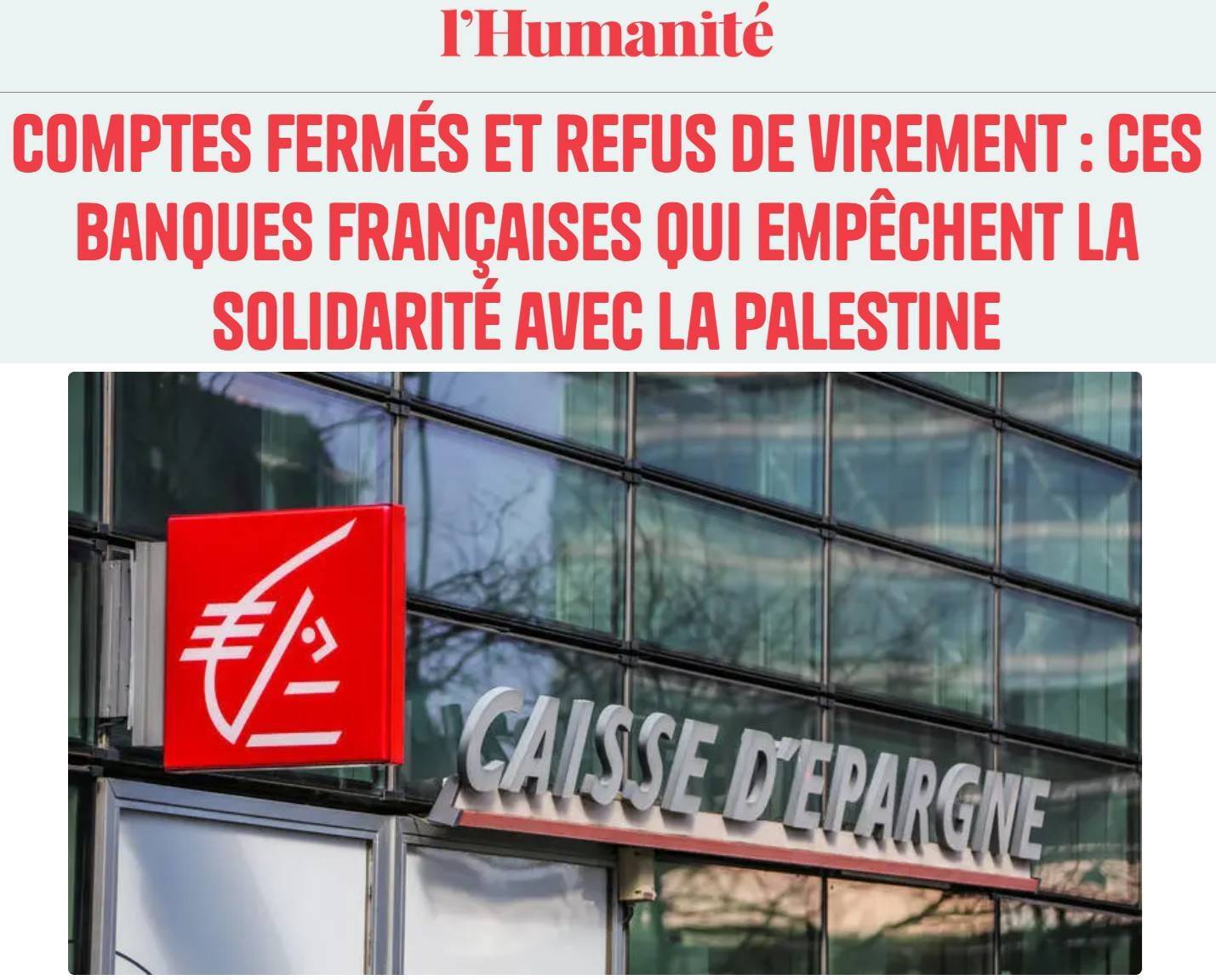 – حساب‌های بانکی بسته، انتقال پول غیرممکن، این بانک فرانسوی از کمک‌ها و همبستگی مردم با فلسطین جلوگیری و مانع ایجاد می‌کند