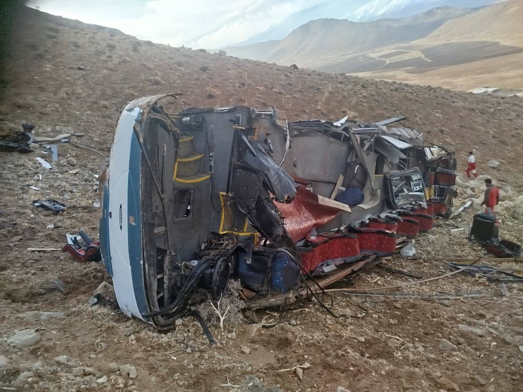 تصاویر اتوبوس واژگون شده مسافران یاسوج در جاده سمیرم