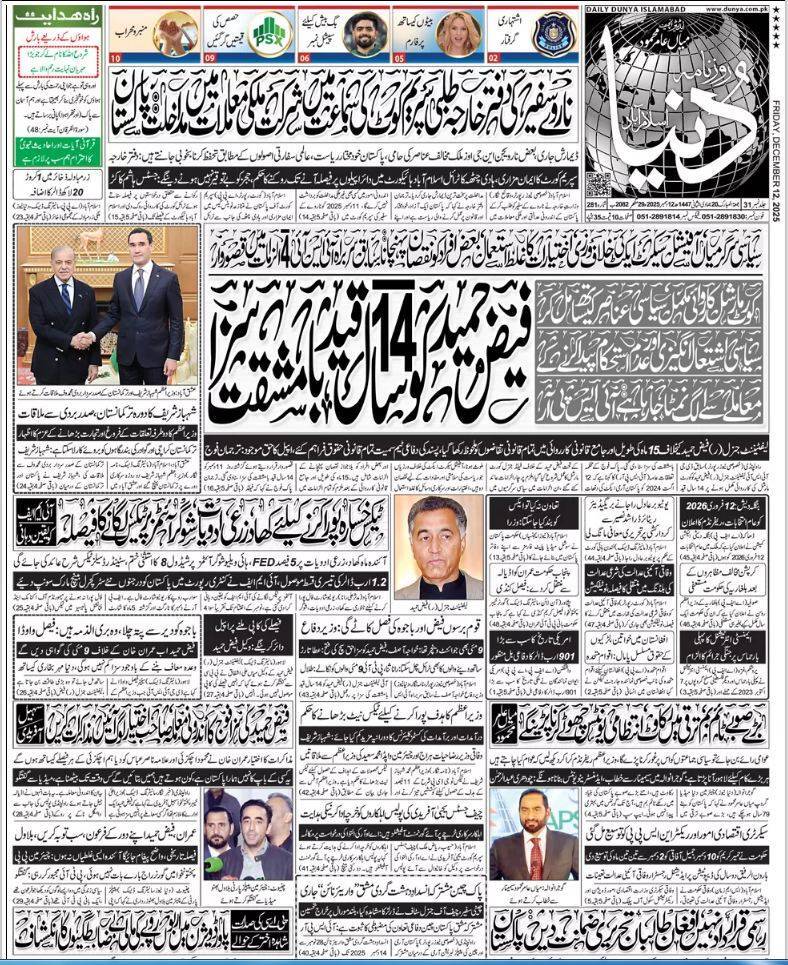 - سناتور فیصل واودا: ژنرال فیض حمید علیه «عمرا خان» در پرونده اغتشاشات ۹ می‌به عنوان شاهد حضور می‌یابد