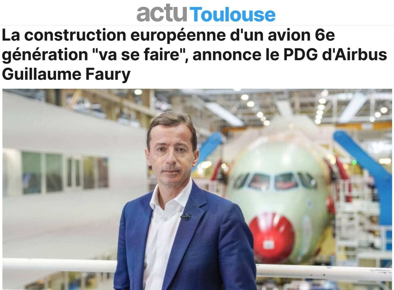 – گیوم فوری مدیر شرکت هواپیماسازی ایرباس می‌گوید ساخت هواپیمای جنگی نسل ششم با همکاری بعضی کشور‌های اروپایی در دستور کار است.