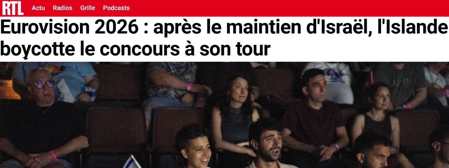 – کشور‌هایی مانند اسپانیا، ایرلند و ایسلند و هلند، پس از دیدن نام رژیم اسرائیل در یورو ویژن، آن را تحریم کردند. این جشنواره موسیقی قرار است می ۲۰۲۶ در وین اتریش برگزار شود.