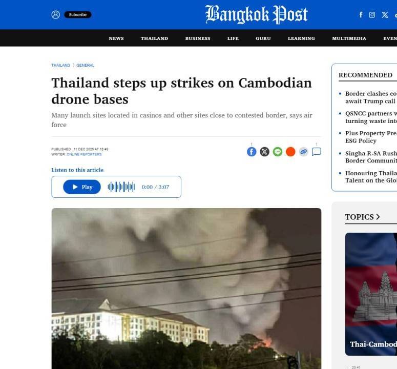 - تشدید حملات تایلند علیه پایگاه‌های پهپادی کامبوج