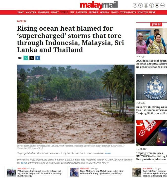 - گرمای فزاینده اقیانوس‌ها عامل شکل‌گیری طوفان‌های «بسیار قدرتمند» که اندونزی، مالزی، سریلانکا و تایلند را درنوردید