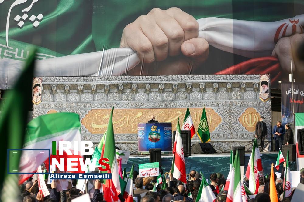 ملت ایران اسلامی که از صبح امروز ۲۲ دی ۱۴۰۴ با حضور در خیابانهای تهران و استانهای مختلف از اقدامات تروریستی چند روز اخیر اعلام انزجار کردند، از ساعت ۱۴ امروز اجتماع عظیم خود علیه جنایات و وحشیگریهای داعشگونه تروریستی را آغاز کردند.