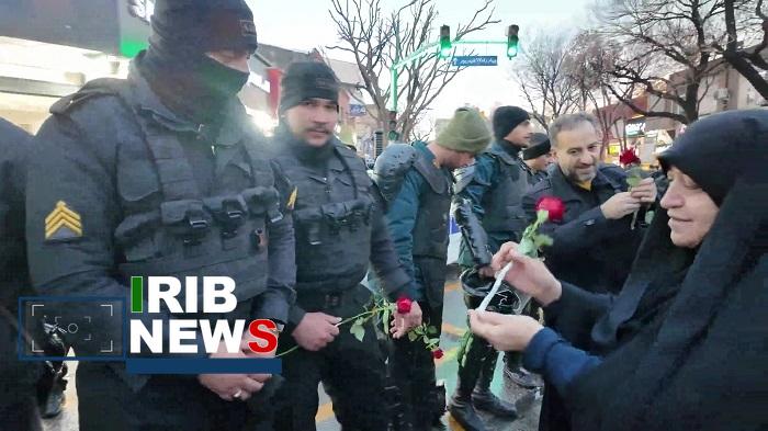 اهدای گل به نیرو‌های انتظامی در تبریز