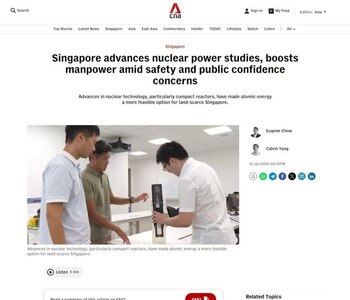 - سنگاپور مطالعات انرژی هسته‌ای را پیش برده و همزمان با نگرانی‌های ایمنی و اعتماد عمومی، نیروی انسانی را تقویت کرده