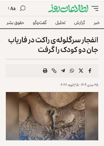 - انفجار سرگلوله راکت در فاریاب جان ۲ کودک را گرفت