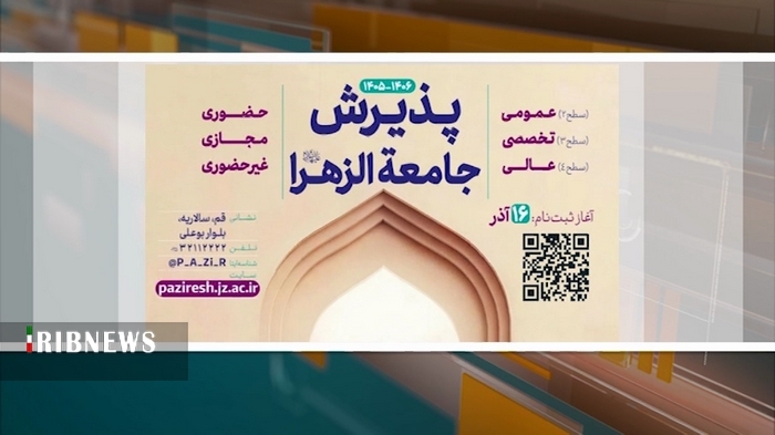 پذیرش و ثبتنام آزمون ورودی جامعهالزهرا سلاماللهعلیها برای سال تحصیلی ۱۴۰۶–۱۴۰۵ تا ۲۲ بهمن سال جاری تمدید شد.