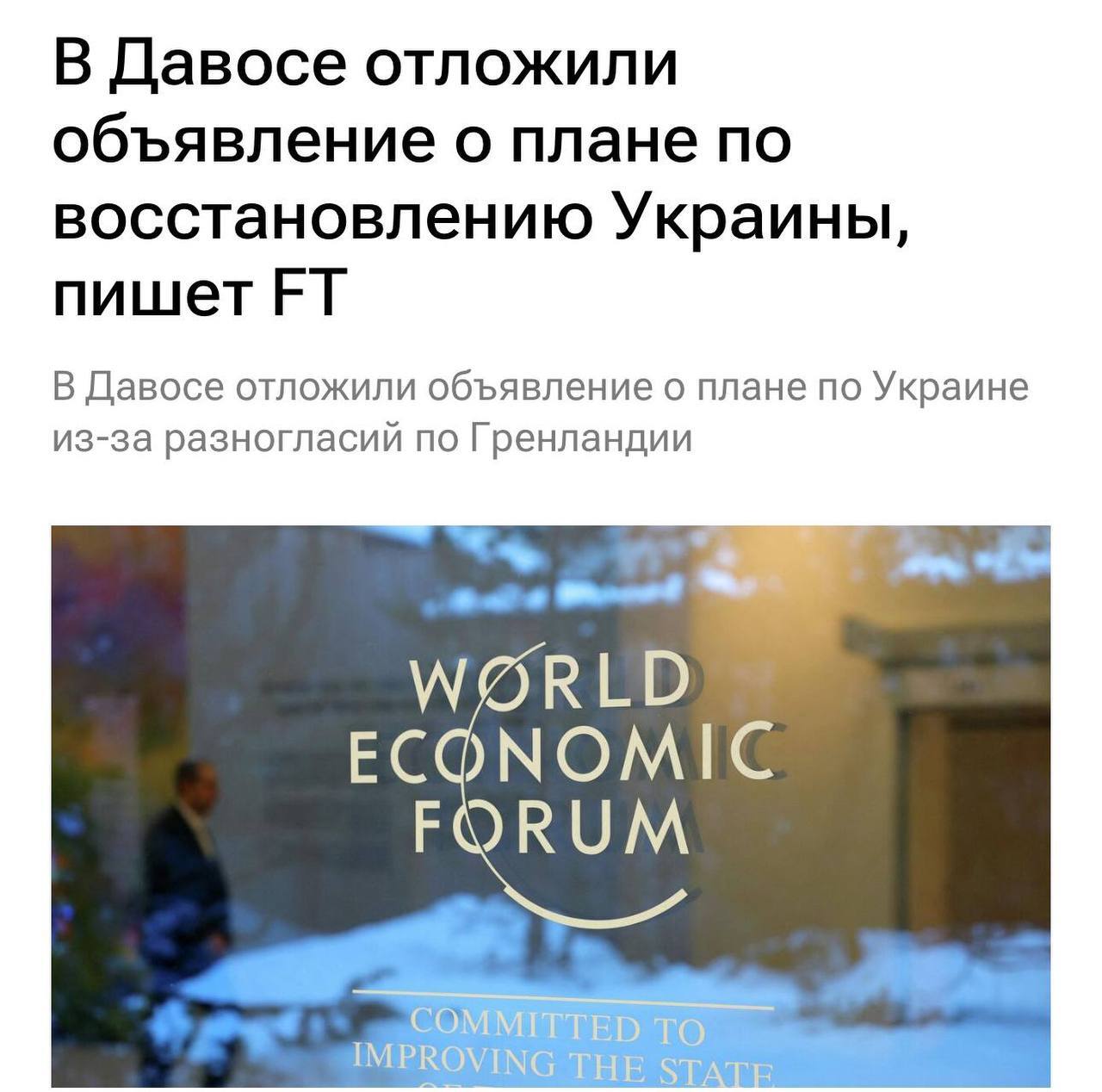 ⁃ فایننشال تایمز: اعلام طرح بازسازی اوکراین در داووس به تعویق افتاد