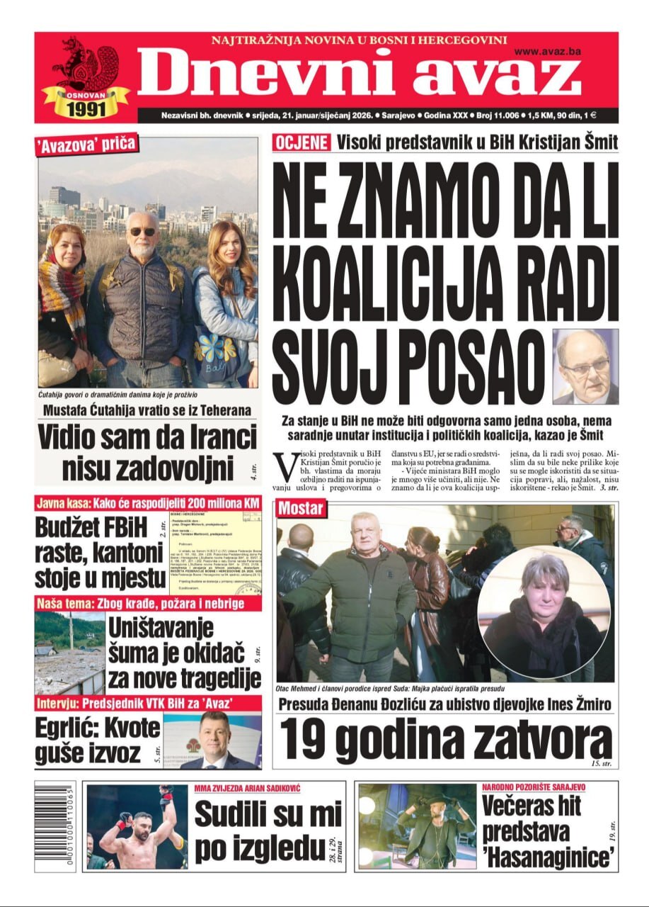 مهمترین عناوین روزنامههای بوسنی و هرزگوین