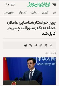 - چین خواستار شناسایی عاملان حمله بر یک رستوران چینیها در کابل شد
