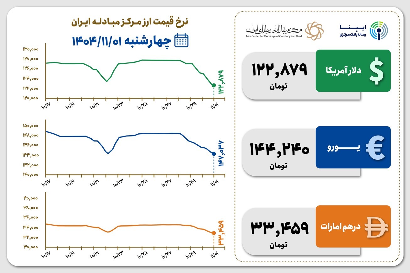 قیمت دلار و یورو مرکز مبادله ایران؛ امروز چهارشنبه ۱ بهمن ۱۴۰۴