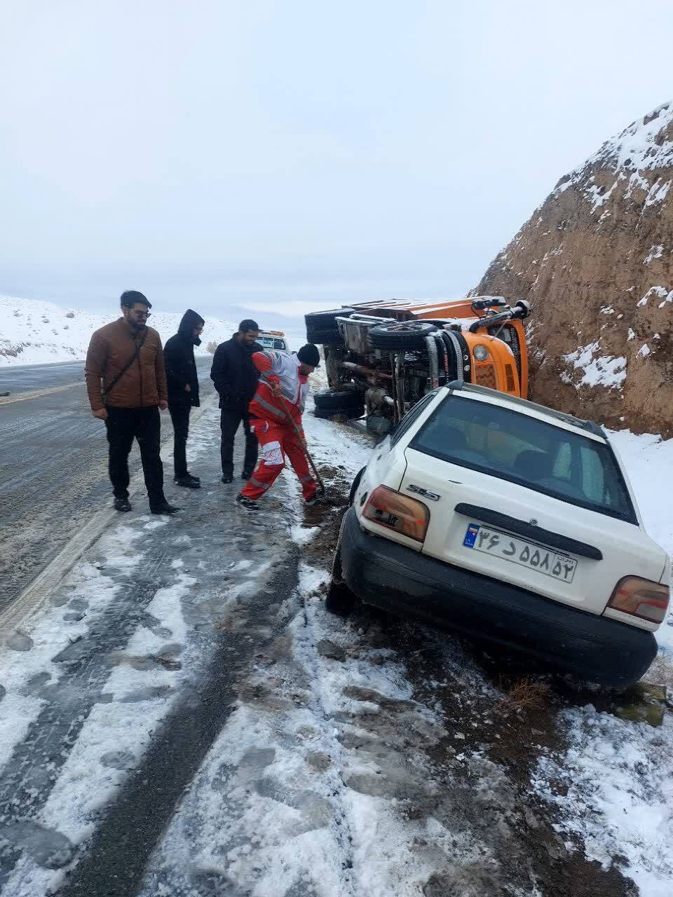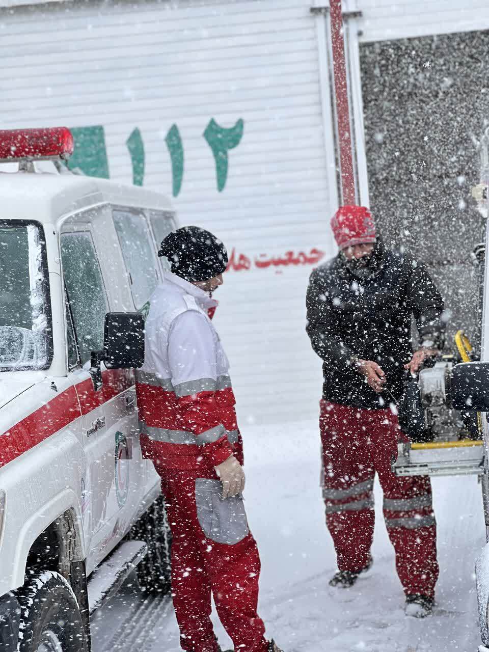 نیروهای هلال احمر در این روز برفی حضور فعالی در جاده های استان دارند.