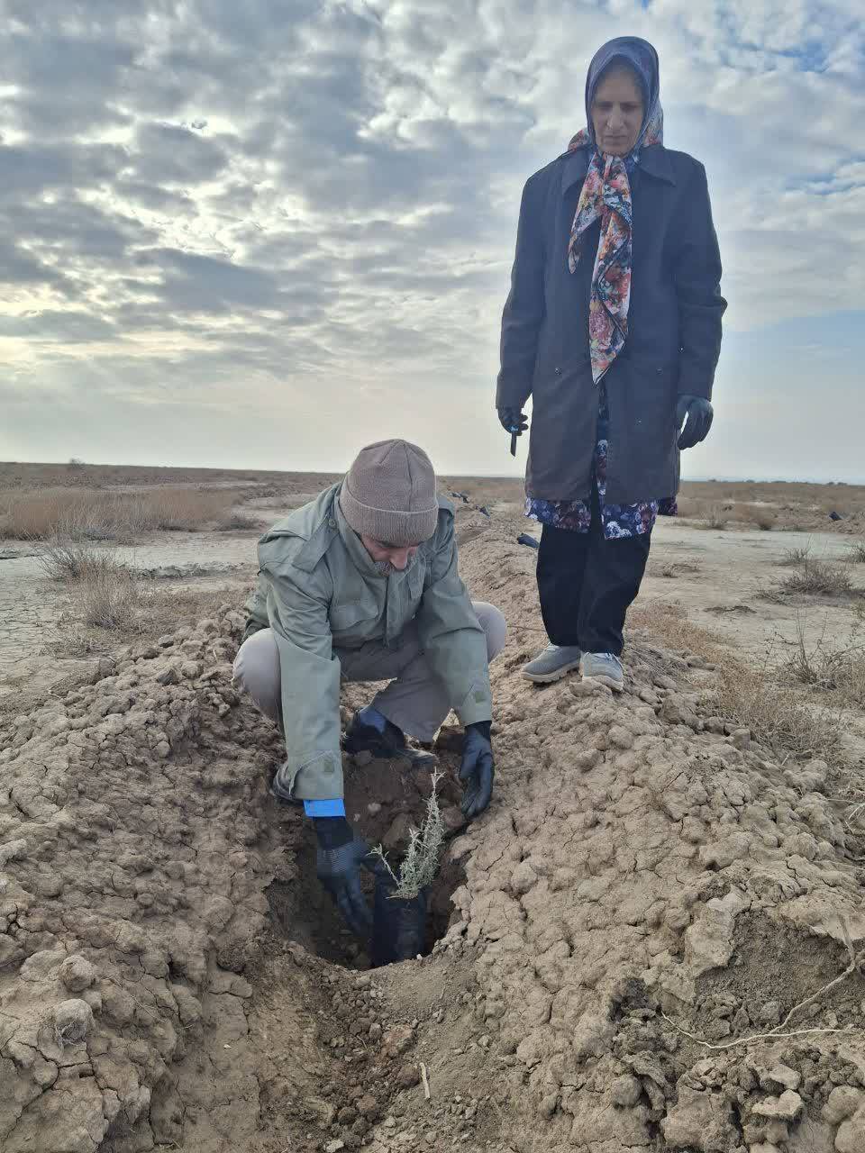 با حضور همیاران طبیعت در حاشیه کالشور نیشابور، ۸۰۰ اصله نهال آتریپلکس کاشته شد.