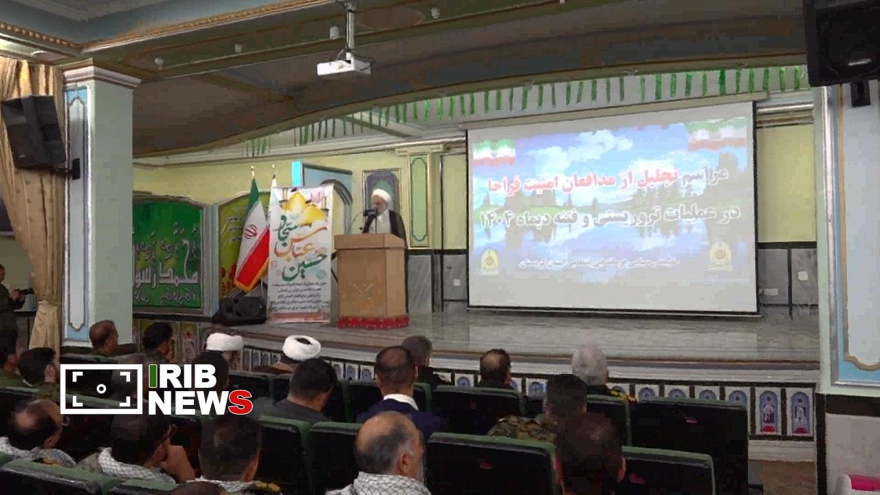 فرمانده انتظامی استان هم در این مراسم گفت: دشمنان انقلاب، با طراحی فتنه مسلّحانه نتوانستند شکافی بین مردم و نظام ایجاد کنند و با تدابیر مقام معظم رهبری و همدلی نیرو‌های مسلّح و مردم، تمامی توطئه‌ها به شکست انجامید.