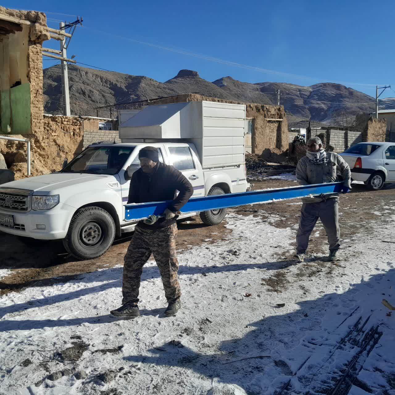 گروههای جهادی در سرمای بهمن برای مردم سرپناه میسازند.