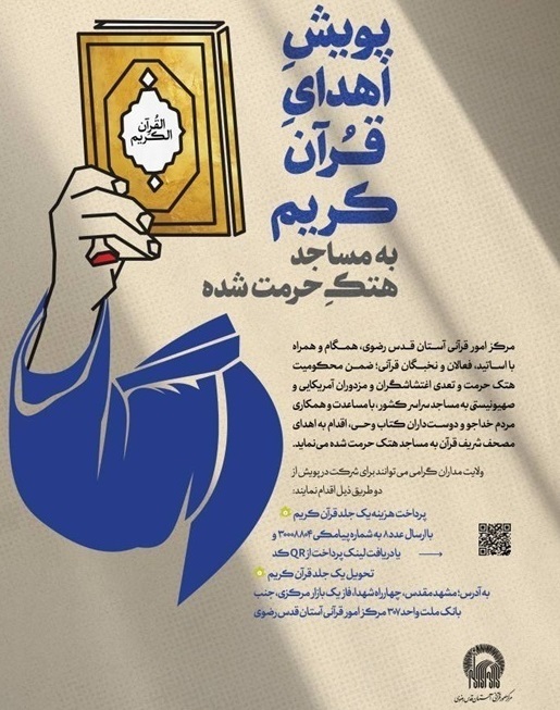 خبرگزاری صدا و سیما، مرکز خراسان رضوی، مرکز امور قرآنی آستان قدس رضوی، با انتشار بیانیهای، هتک حرمت برخی مساجد کشور در حوادث اخیر را محکوم و از عموم مردم برای مشارکت در پویش مردمی اهدای قرآن کریم به این مساجد دعوت کرد.