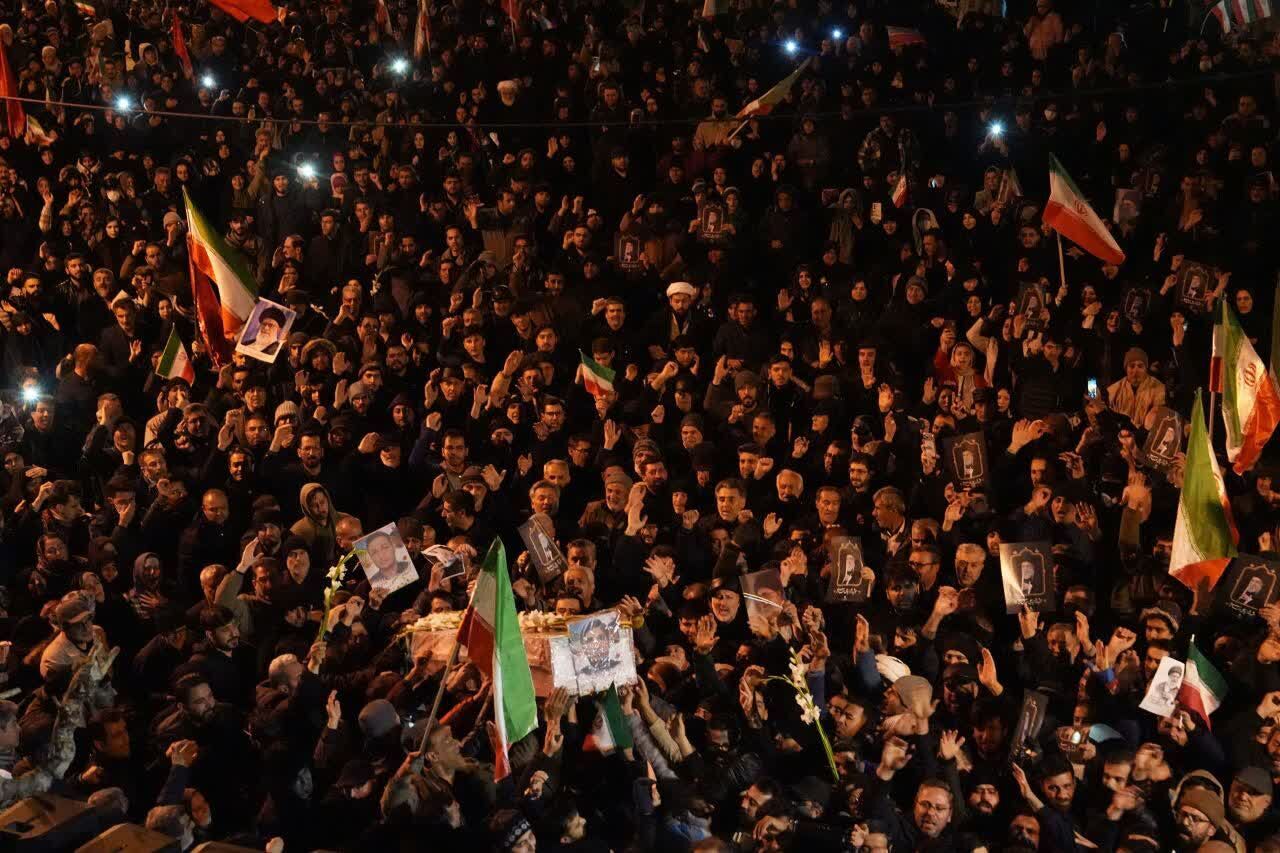 مردم داغدار تهران شامگاه سه‌شنبه بار دیگر با حضور پرشور در میدان ولیعصر (عج)، شعار "الله اکبر" سر دادند و با برافراشتن پرچم ایران در آیین همبستگی به میزبانی سازمان فرهنگی هنری شهرداری تهران شرکت کردند.