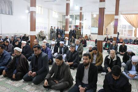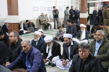 مراسم سوگواری شهادت رهبر انقلاب اسلامی در مسجد میرقوام الدین شهرستان تربت جام با حضور مردم، مسئولان و علمای اهل سنت برگزار شد.