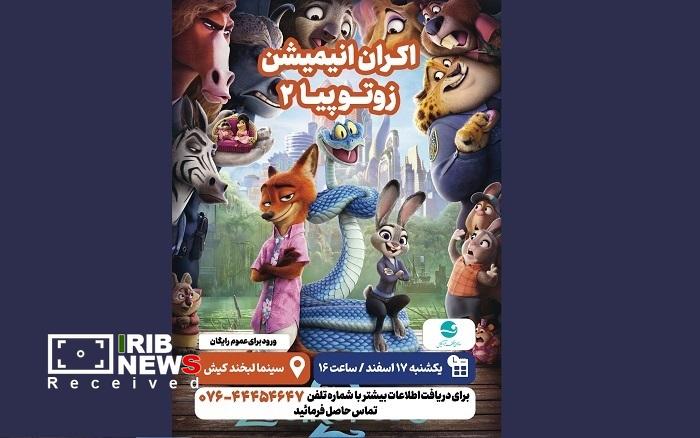 براساس برنامه امروز انیمیشن زوتوپیای۲ از ساعت ۱۶ در سینما لبخند کیش نمایش داده می شود.