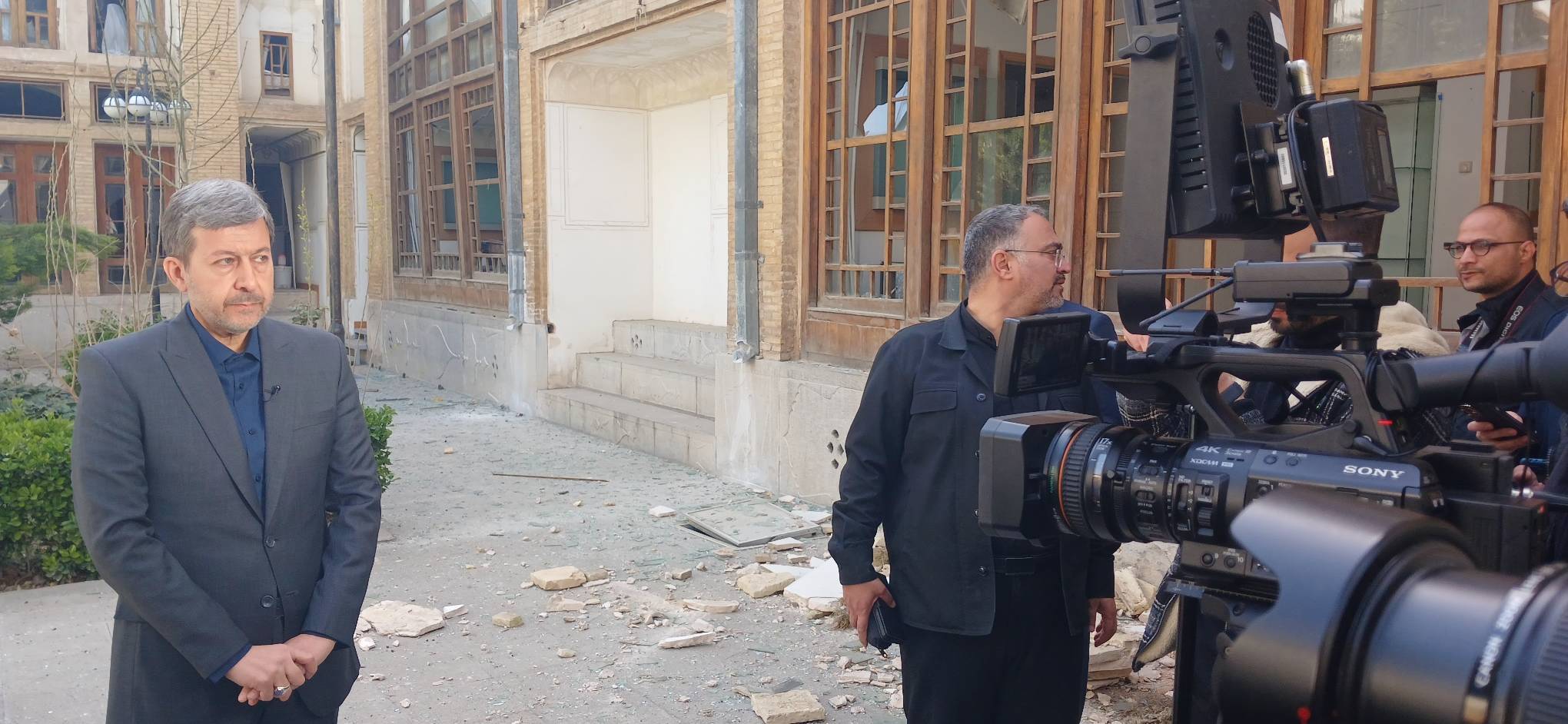در این بازدید همچنین از ساختمان آسیب دیده استانداری اصفهان بازدید شد و خبرنگار صداوسیما روایتگر آسیب به ساختمان استانداری اصفهان در پی حملات اخیر اسرائیل و آمریکا است.
