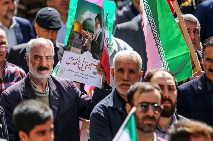حضور مردم تهران زیر باران در حمایت از قدس شریف