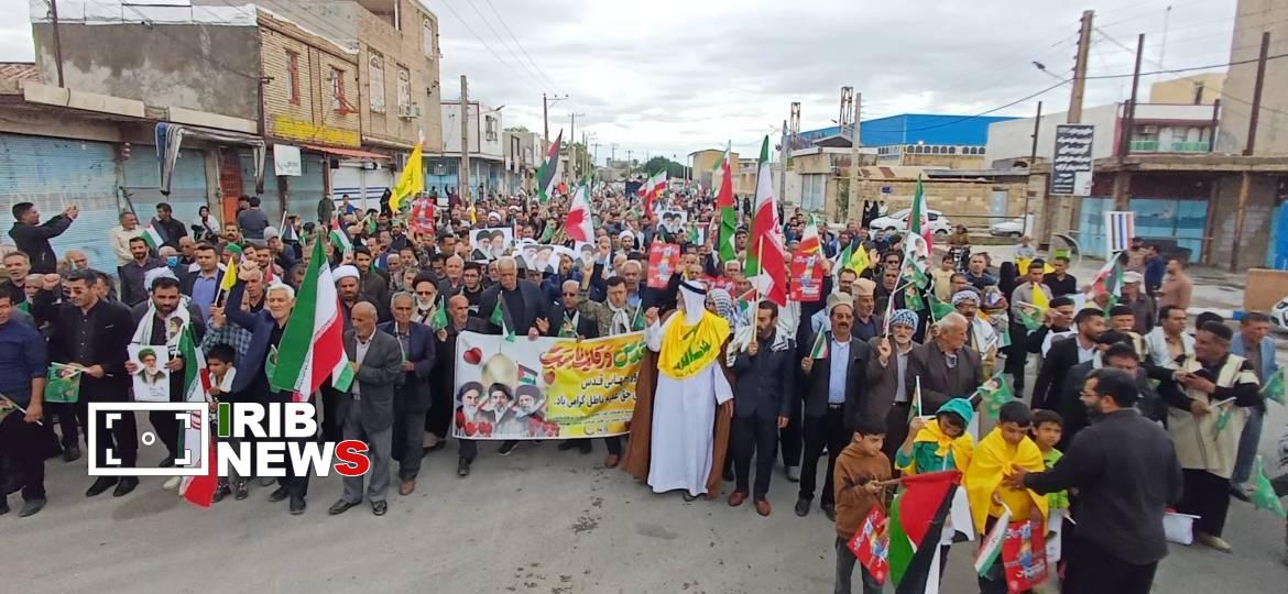 به گزارش خبرگزاری صدا و سیمای استان خوزستان، راهپیمایی جهانی روز قدس، گرامیداشت شهادت رهبر فقید اسلام و بیعت با سومین رهبر انقلاب اسلامی ایران، آیت الله سید مجتبی حسینی خامنه‌ای در اهواز و سایر شهر‌های خوزستان آغاز شد.