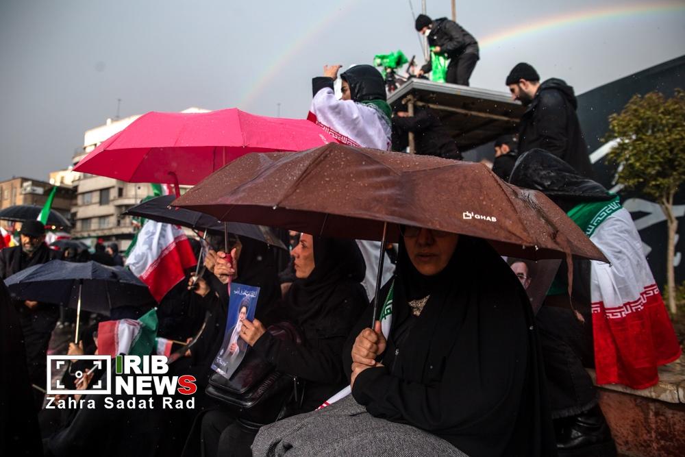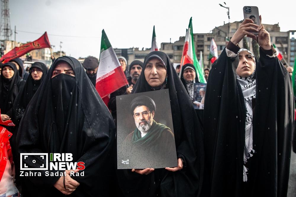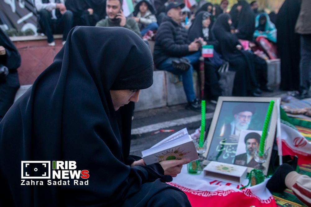 مراسم لحظه تحویل سال نو، عصر امروز جمعه ۲۹ اسفند ماه ۱۴۰۴ با حضور اقشار مختلف مردم در میدان انقلاب تهران برگزار شد. زنان و مردانی از قشرهای مختلف با در دست داشتن پرچمهای ایران و شعارهای امیدبخش، بار دیگر حمایت قاطع خود از آرمانهای نظام و همدلی ملی را به نمایش گذاشتند. این تجمع خودجوش که با فضایی سرشار از شور و نشاط برگزار شد، آیینه تمامنمای اراده جمعی مردم تهران برای آغاز سالی همراه با همبستگی و پایداری بود.