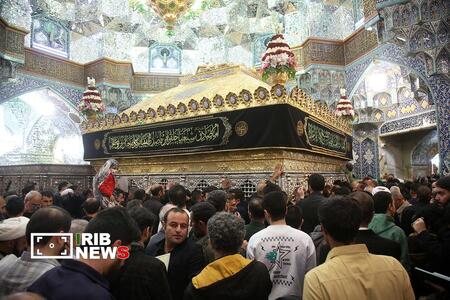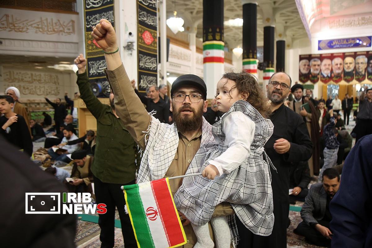 زائران و مجاوران با در دست داشتن عکس رهبر شهید، دیگر شهدای جنگ تحمیلی و پرچم ایران بر تداوم مبارزه تا نابودی دشمنان آمریکایی صهیونیستی تاکید داشتند.