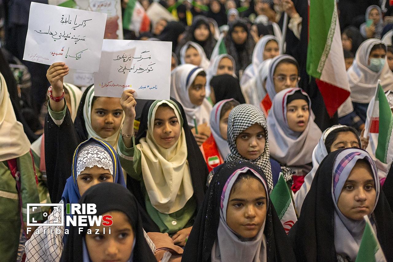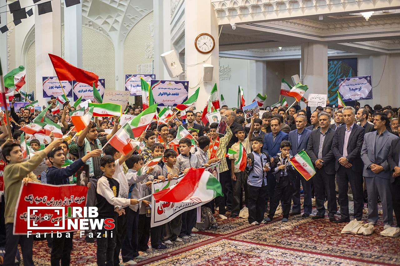 دانشآموزان شیرازی در چهلمین روز از شهادت دختران دانشآموز میناب و استان فارس در حرم مطهر حضرت احمد ابن موسی (ع) گرد هم آمدند و یاد و خاطرات همکلاسیهای شهید خود را که در حملات وحشیانه آمریکایی صهیونیستی به شهادت رسیدند، گرامی داشتند.