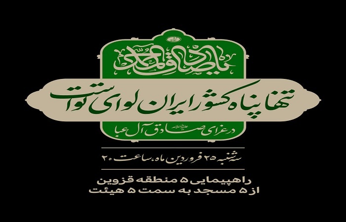 به گزارش خبرگزاری صداوسیما مرکز قزوین، راهپیمایی ۵ منطقه قزوین از ۵ مسجد به سمت محل برگزاری مراسم ۵ هیئت در شام عزای صادق آل عبا (ع) برگزار خواهد شد.
