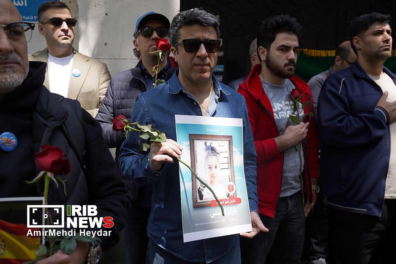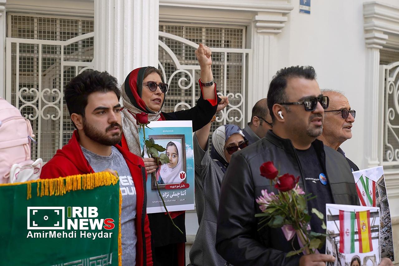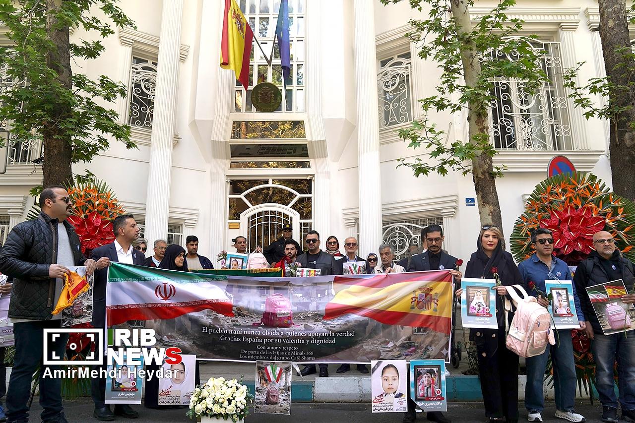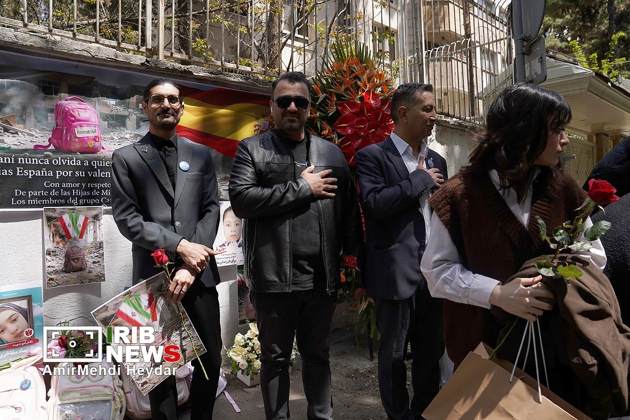 امروز ۲۷ فروردین ۱۴۰۵ گردهمایی مردمی همبستگی ایران و اسپانیا برای قدردانی و پاسداشت حمایتهای انسان دوستانه و جوانمردانه کشور اسپانیا در دوران جنگ تحمیلی مقابل سفارت اسپانیا در تهران برگزار شد. در حالی که ایران ماههاست درگیر جنگی تمامعیار از سوی متجاوزان آمریکایی و رژیم صهیونیستی است، امروز، گروهی از شهروندان تهرانی با حضور در مقابل سفارت اسپانیا در پایتخت، از حمایتهای جوانمردانه و اصولی این کشور اروپایی در طول دوران جنگ تشکر و قدردانی کردند.
