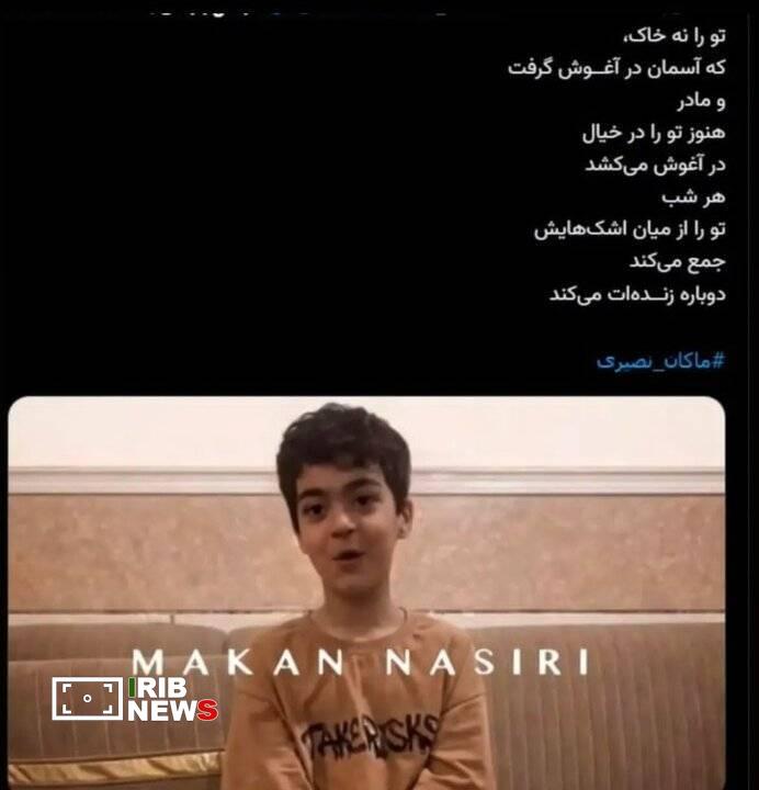 مصطفی راغب برای ماکان نصیری، کودک گمشده میناب نوشت: تو را نه خاک، که آسمان در آغوش گرفت.