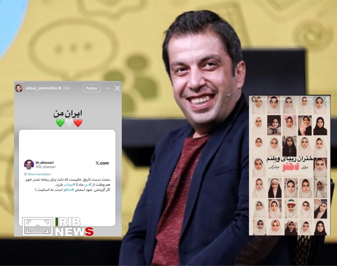 به گزارش خبرگزاری صدا و سیما عباس جمشیدیفر، بازیگر تئاتر و سینما یک یادداشت را در صفحه مجازی خود بازنشر کرد که در آن نوشته است: «سمت درست تاریخ، جاییست که دلت برای ریخته شدن خون هموطنت از دی ماه تا میناب بلرزد. اگر گزینشی شود اسمش منافع است، نه انسانیت.»