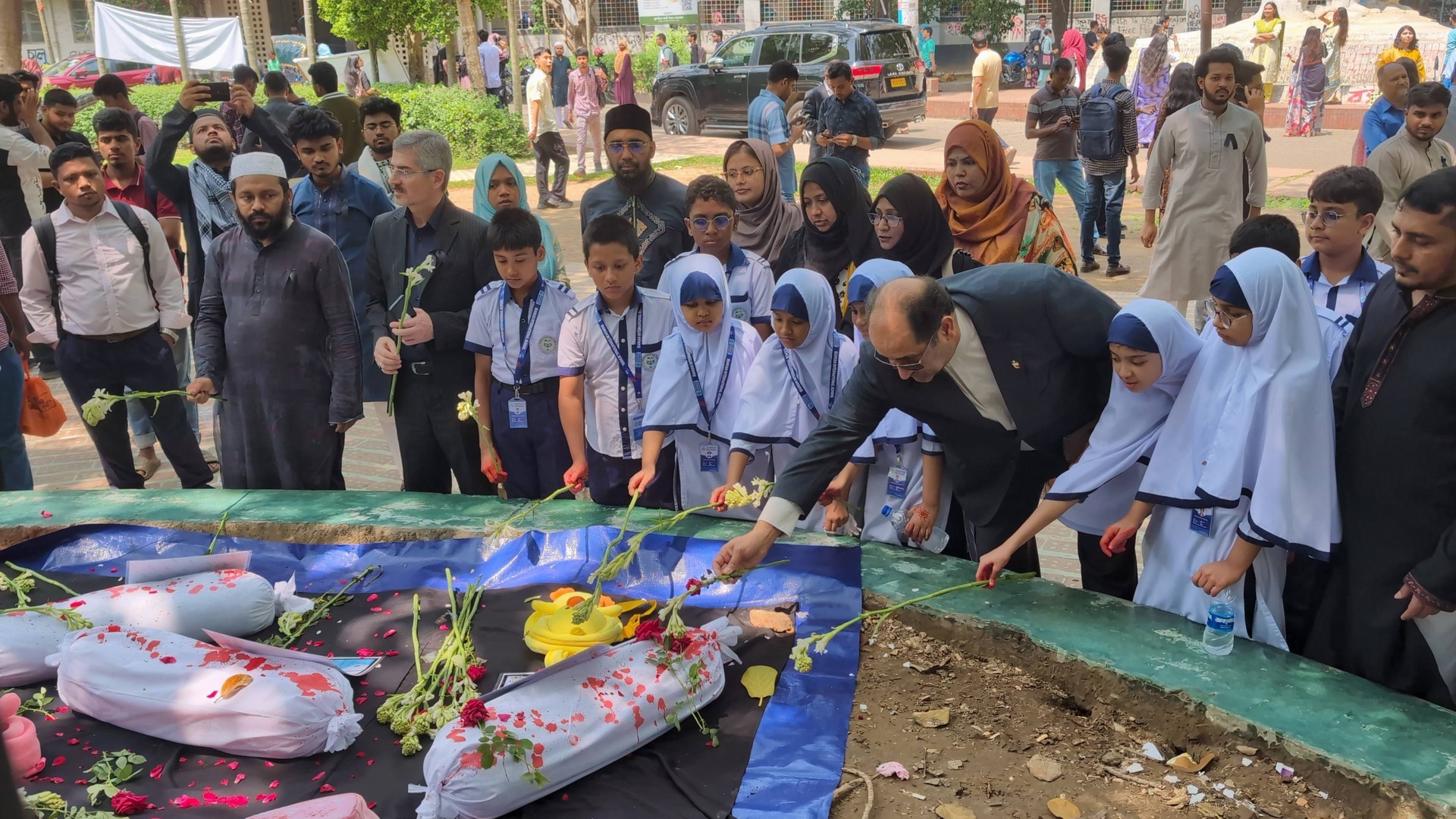 خبرگزاری صدا و سیما، نمایشگاه یک روزه یادبود شهدای دانش آموز مدرسه شجره طیبه میناب با هدف انتشار پیام شهادت و مظلومیت دانش آموزان ایرانی به جهانیان که در اثر جنایت وحشیانه آمریکا و رژیم صهیونیستی در بمباران این مدرسه جان خود را از دست دادند، از سوی رایزنی فرهنگی ایران در بنگلادش و با همکاری تشکل دانشجویی شورای دانشجویان انقلابی بنگلادش در محل دانشگاه داکا برگزار شد.